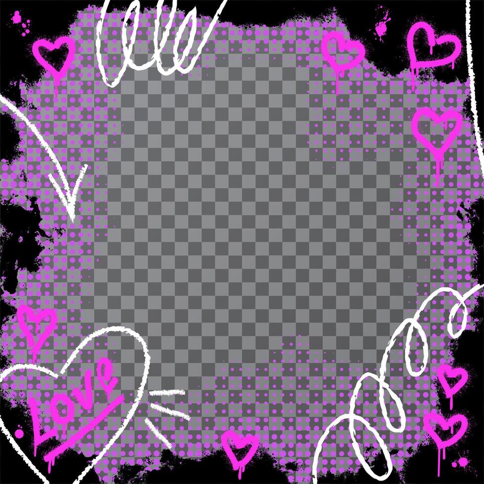 Grunge textured square background for valentines day. Abstract graffiti frame overlay with halftone effect, messy splatter and paint stains for retro layouts Pro Vector