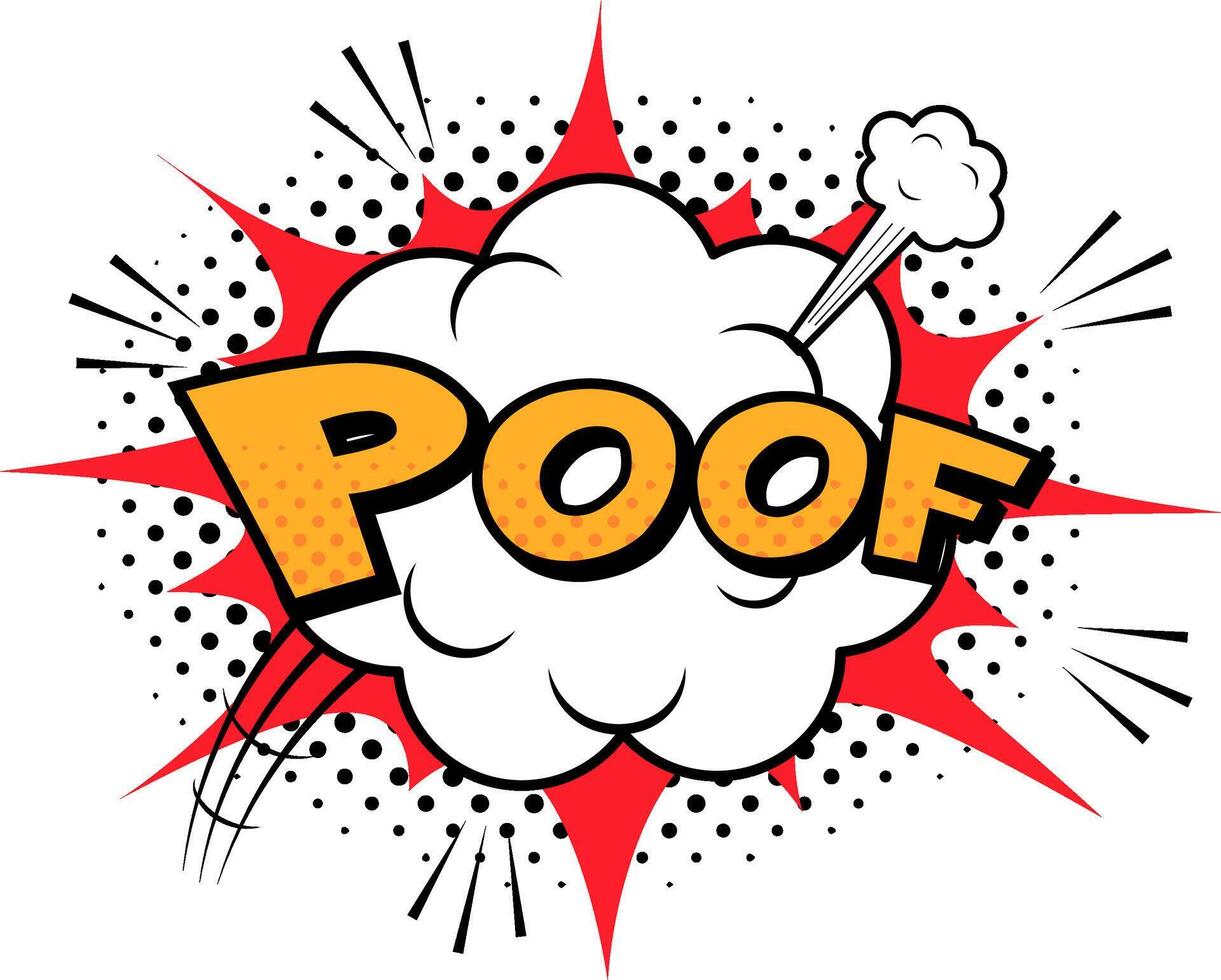 Comic sound effect poof featuring an explosion, swirling smoke, and halftone dots, enhancing comic strips, print materials, and web design projects with a playful vibe Pro Vector