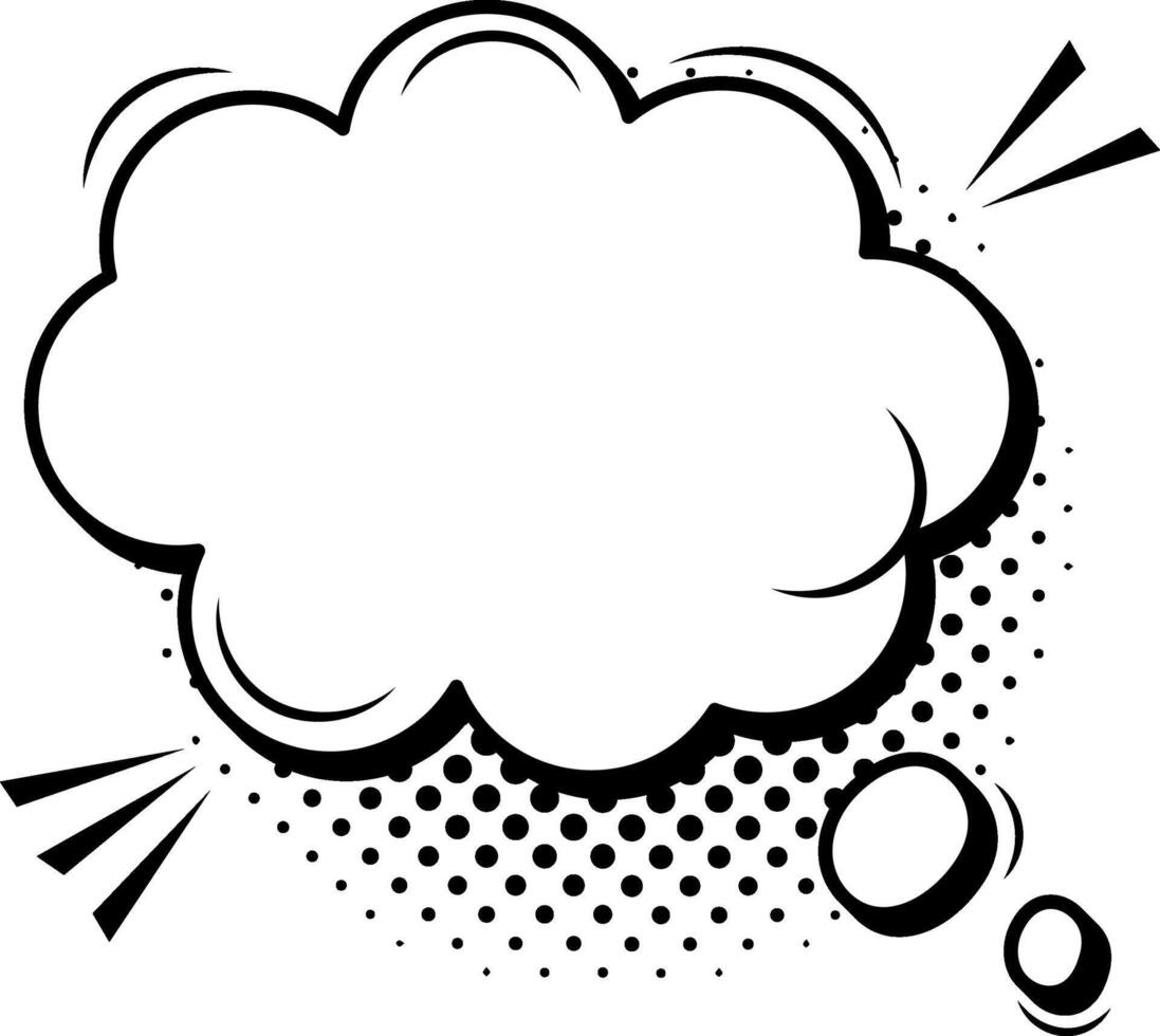 Empty thought bubble with halftone shadow and speed lines is waiting to be filled with a message, quote or idea in a comic book or graphic novel Pro Vector