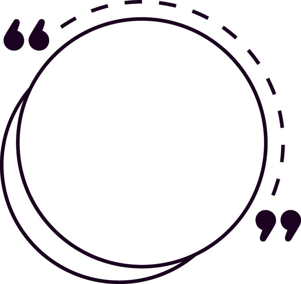 Quotation marks are framing an empty circle with a dotted line, creating a space for text or quotes, emphasizing communication and testimonials Pro Vector