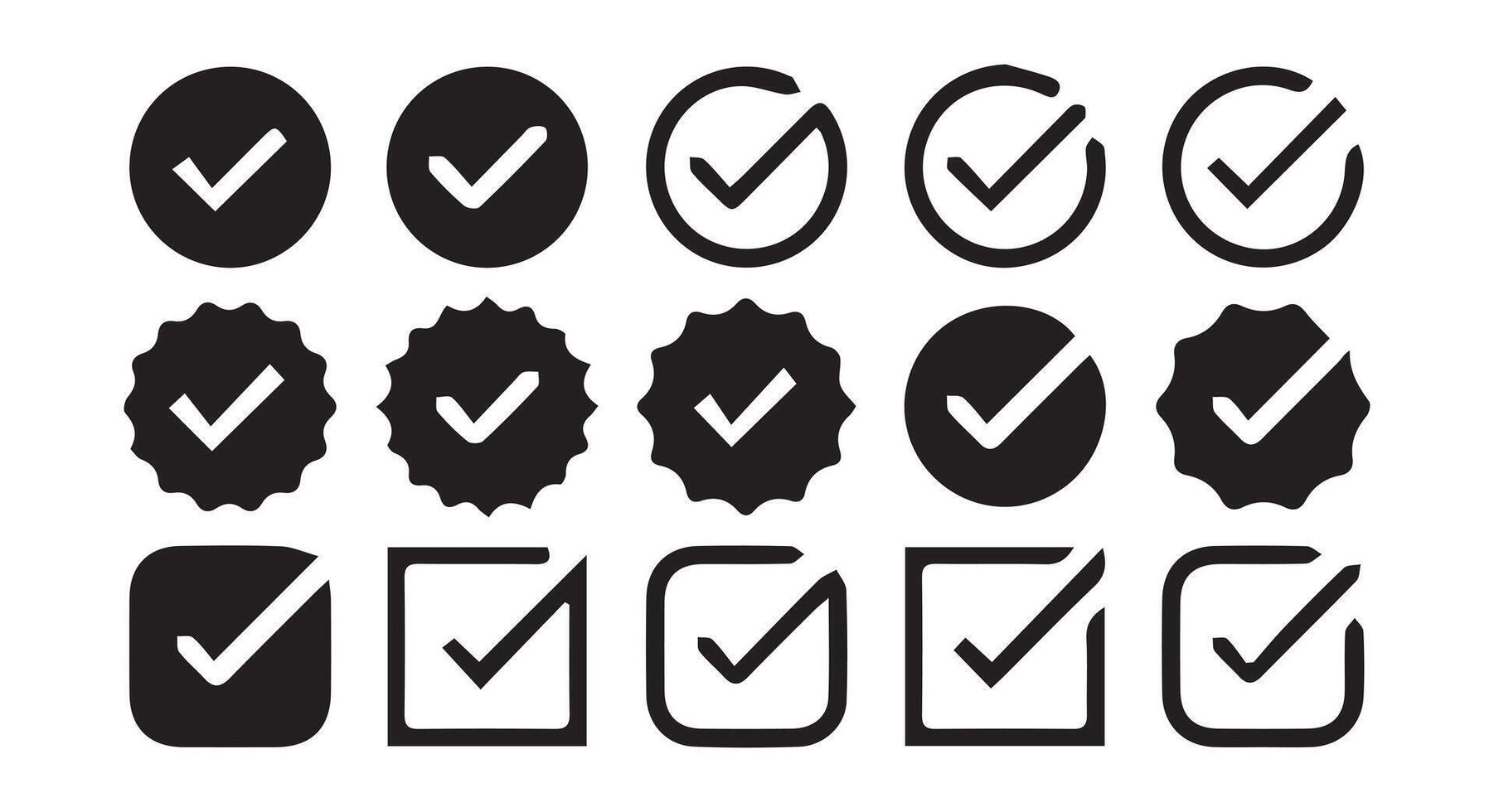 checkmark icon set, approved symbol, checked checkbox mark, checkmark set, editable line. Pro Vector