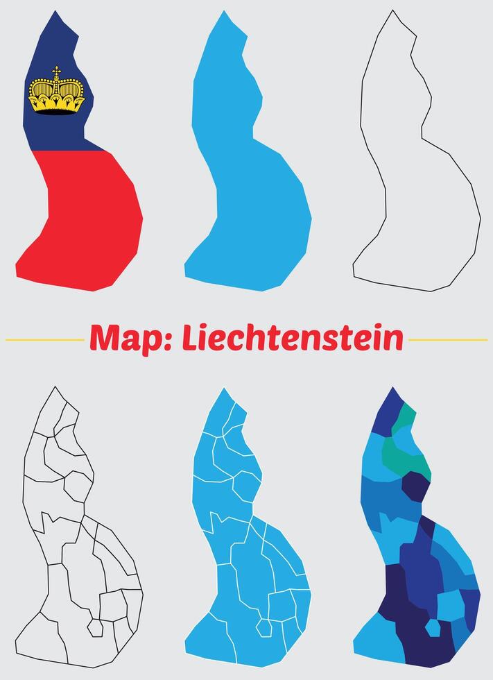 Liechtenstein map set. internal provinces borders marked, Simple map of Liechtenstein drawing, Filled and outline. Pro Vector