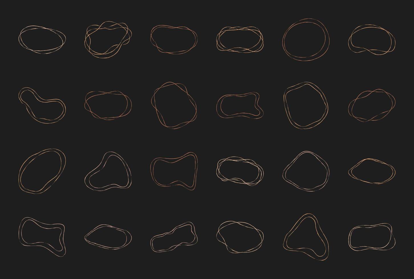 Flat geometric random circle line form collection, cute organic amorphous round symbol graphic, trendy abstract minimal element set, doodle boho irregular art, modern asymmetric oval shape design, Pro Vector