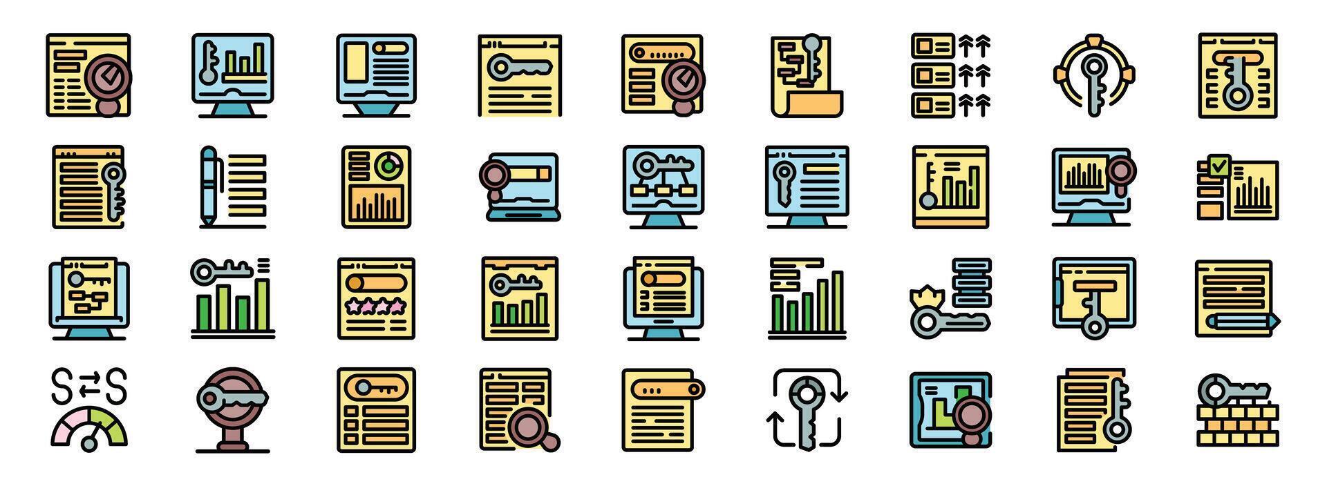 Keyword research and seo optimization icons showing search engine optimization and digital marketing strategies Pro Vector