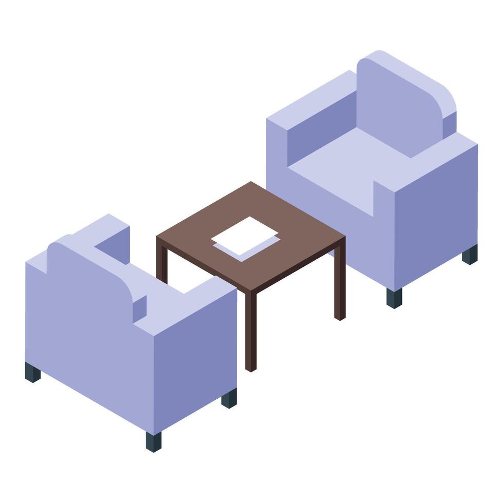 Two armchairs and table with documents creating relaxing corner Pro Vector