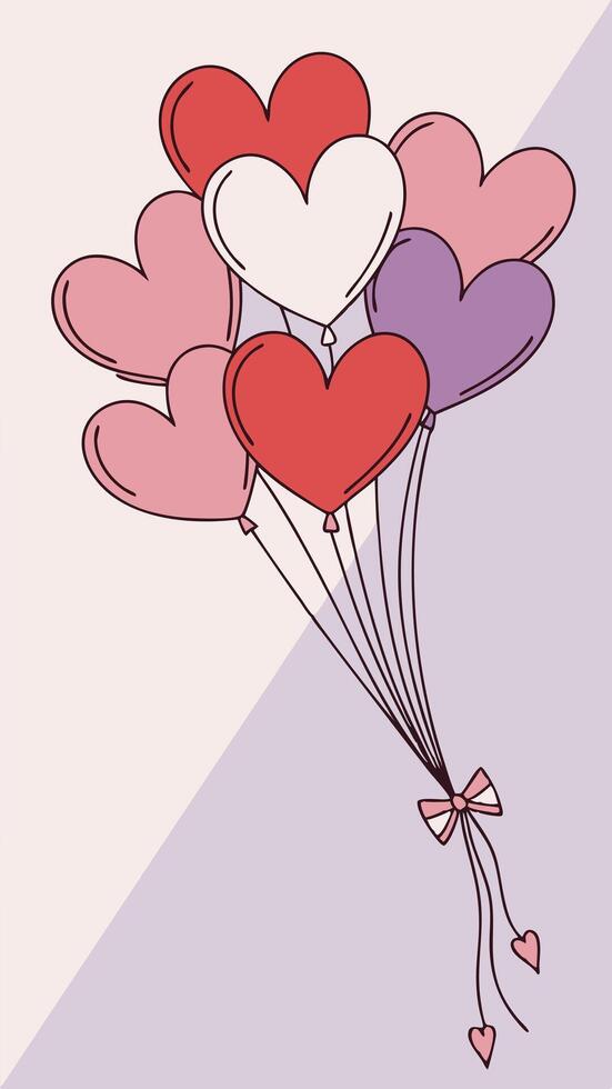 A lively design featuring heart-shaped balloons in red, pink, and lavender, floating at the top against a soft gradient background, with an open center for text. vector