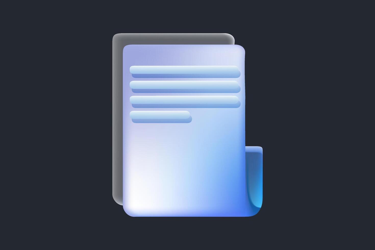 Documents and files icon in style of glassmorphism with gradient, blur and transparency. Glassmorphism paper document, Pro Vector