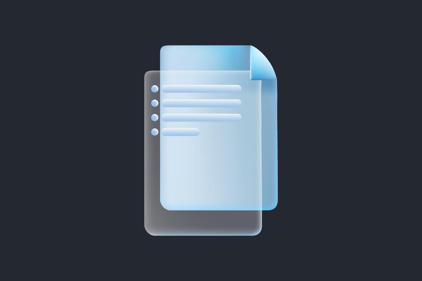 Document and files icon in style of glassmorphism with gradient, blur and transparency. Glassmorphism paper document, Pro Vector