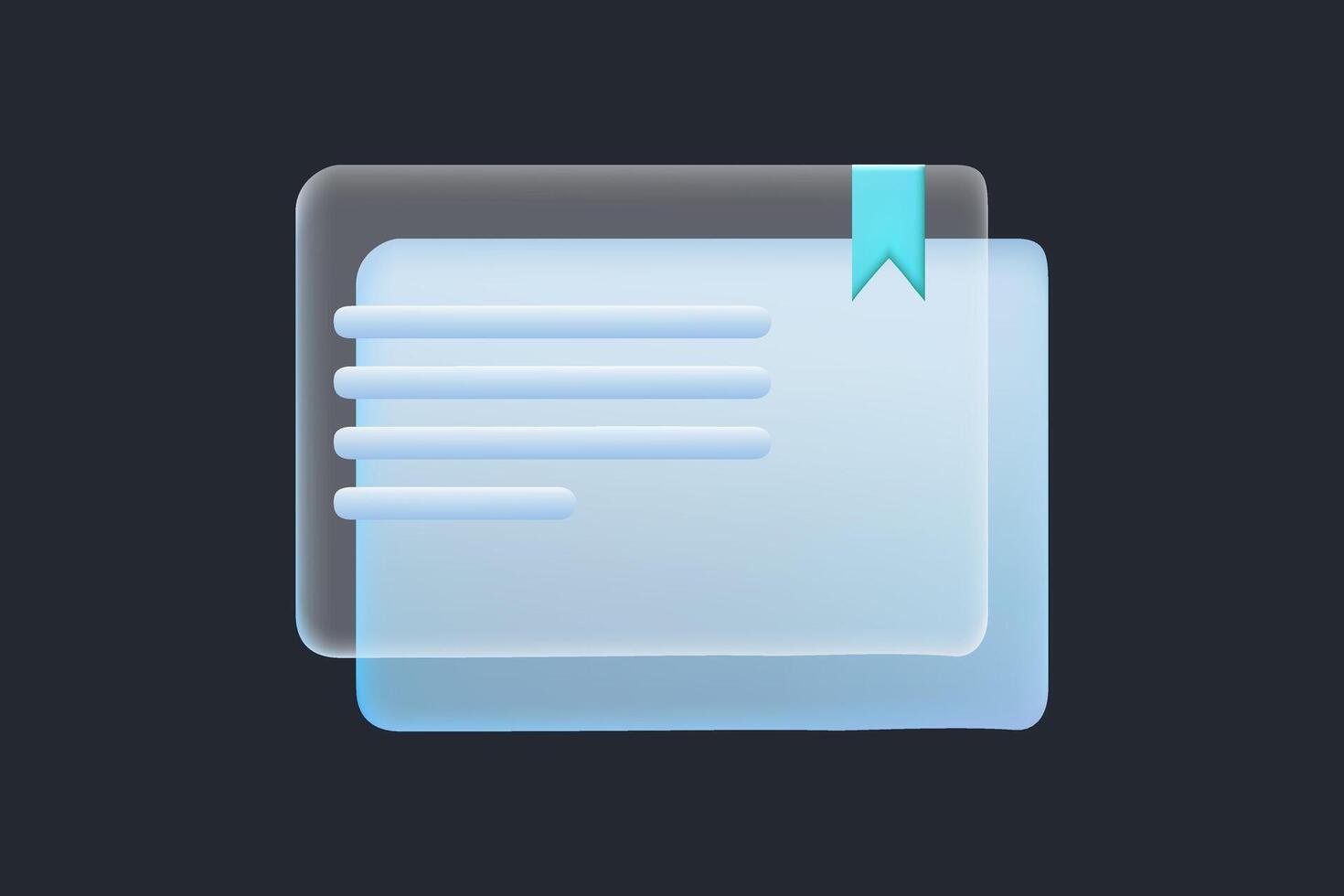Documen and files icon in style of glassmorphism with gradient, blur and transparency. Glassmorphism paper document, Pro Vector