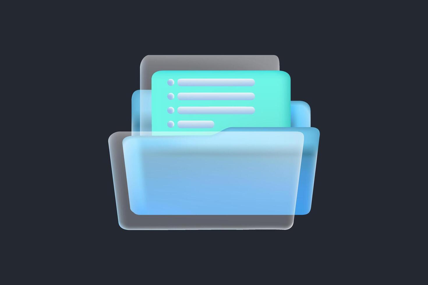 Documents and files icon of glassmorphism with gradient, blur and transparency. Glassmorphism paper document, Pro Vector