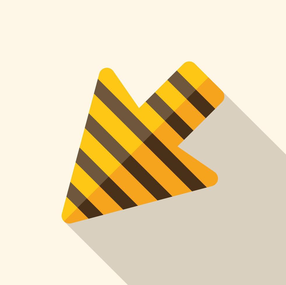 Diagonal left arrow with black and yellow stripes pointing down left with drop shadow Pro Vector