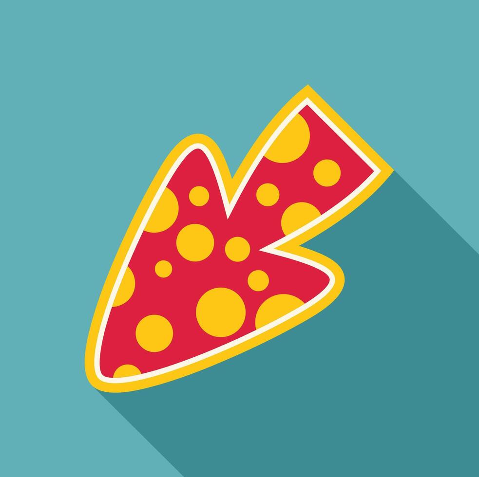Red arrow pointing left with yellow polka dots and long shadow Pro Vector