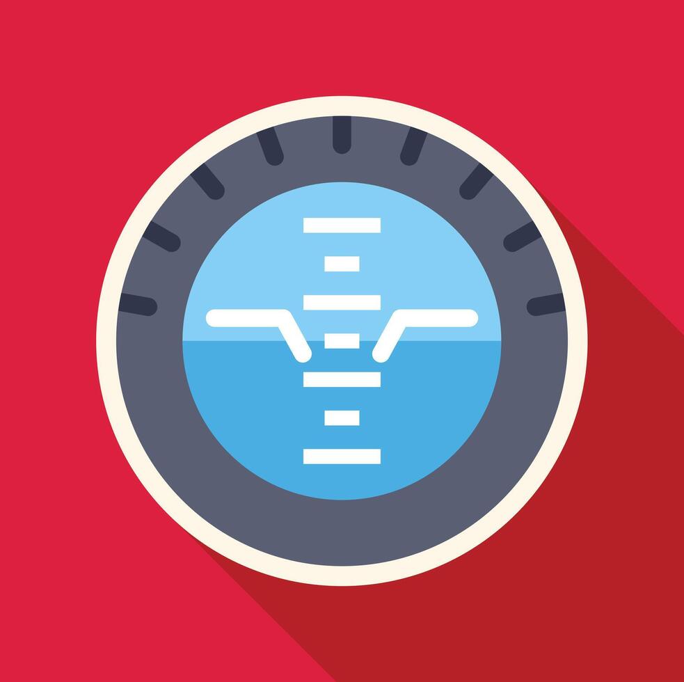Attitude indicator showing level flight in aircraft cockpit panel with red background Pro Vector