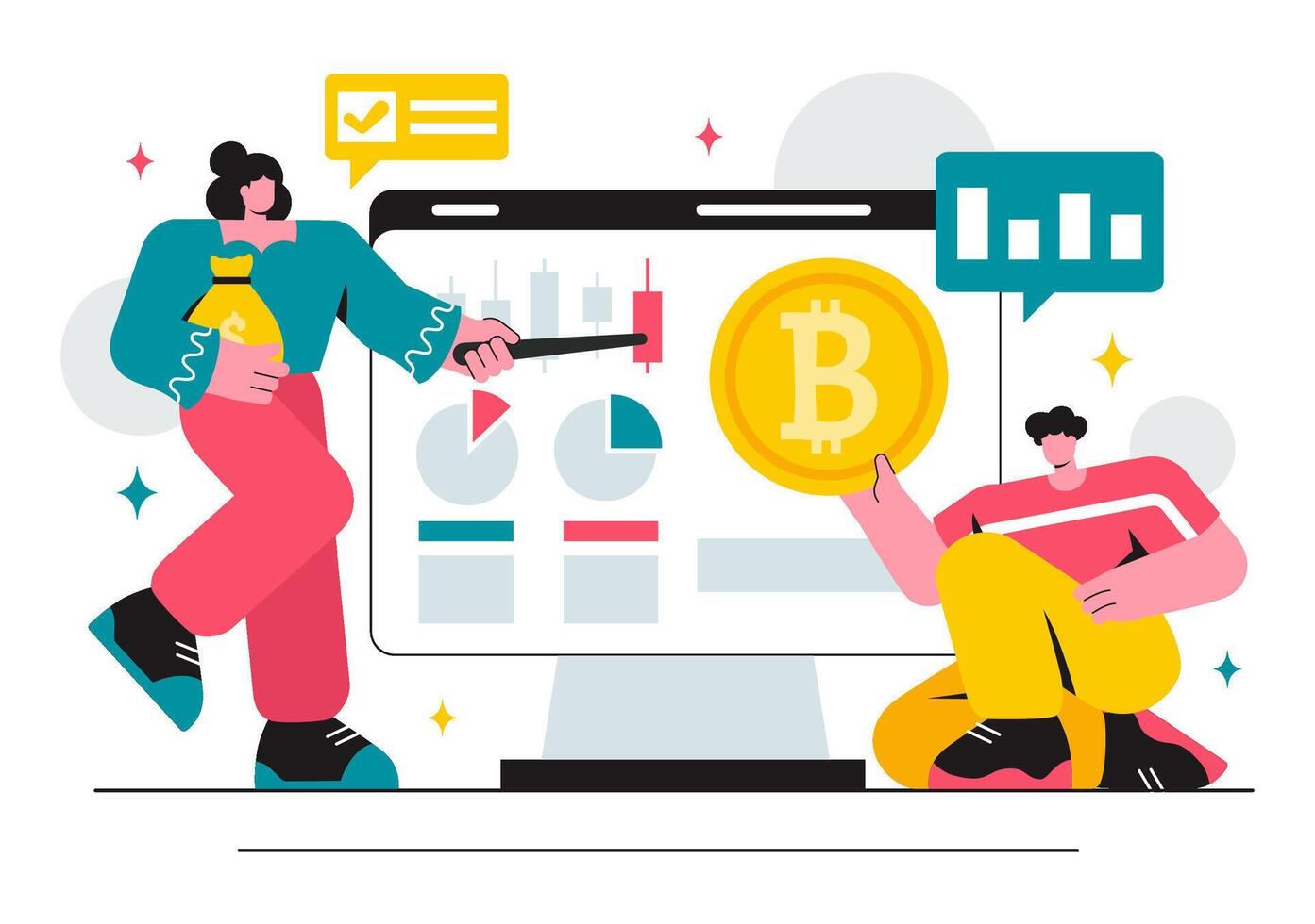 Bitcoin and Cryptocurrency Wallet Illustration with Blockchain Technology and a Stack of Digital Coins Pro Vector