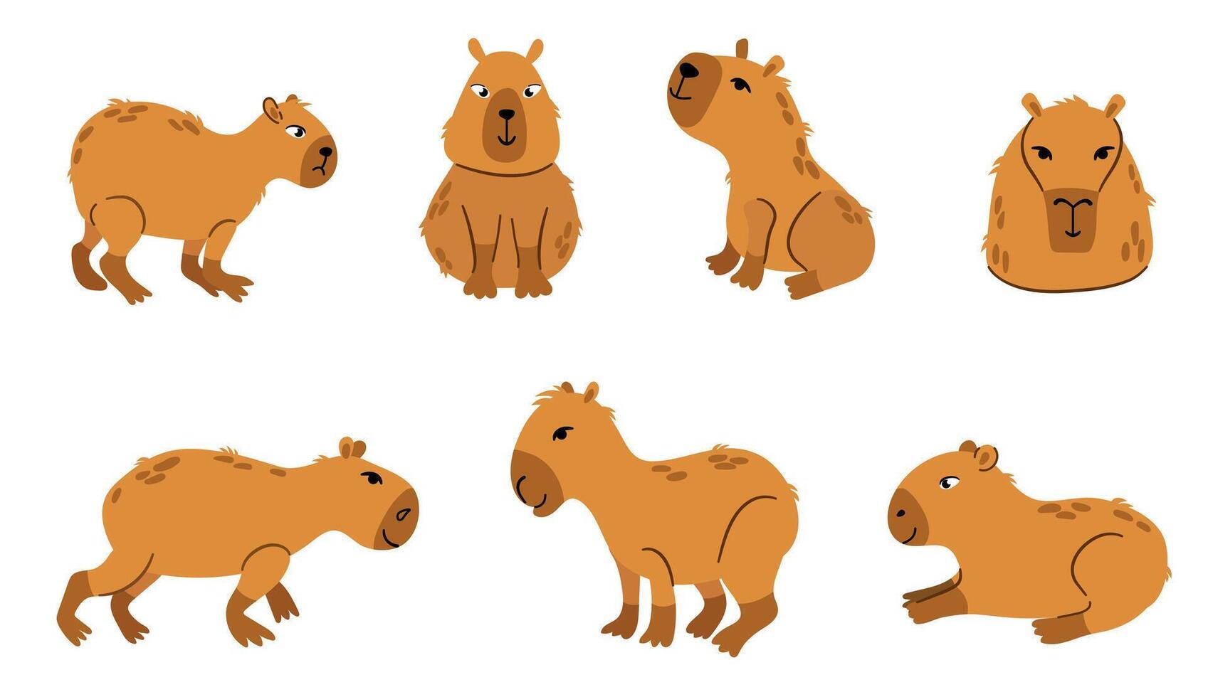 Set of hand drawn capybara. White background, isolate. Pro Vector
