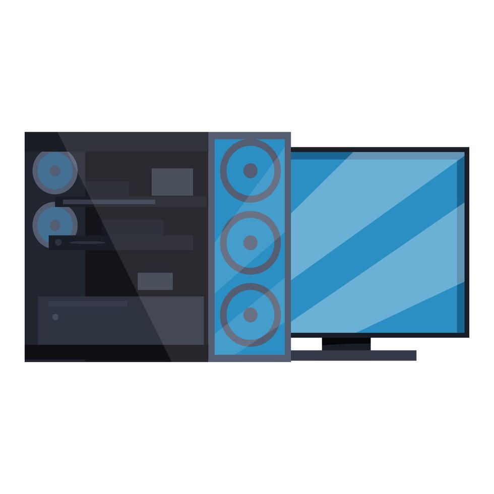 Modern desktop computer with monitor and speakers creating a powerful multimedia setup Pro Vector
