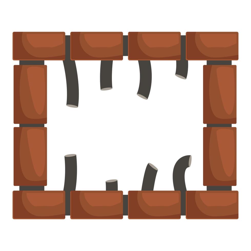 Broken brick wall with hanging wires creating empty square frame Pro Vector