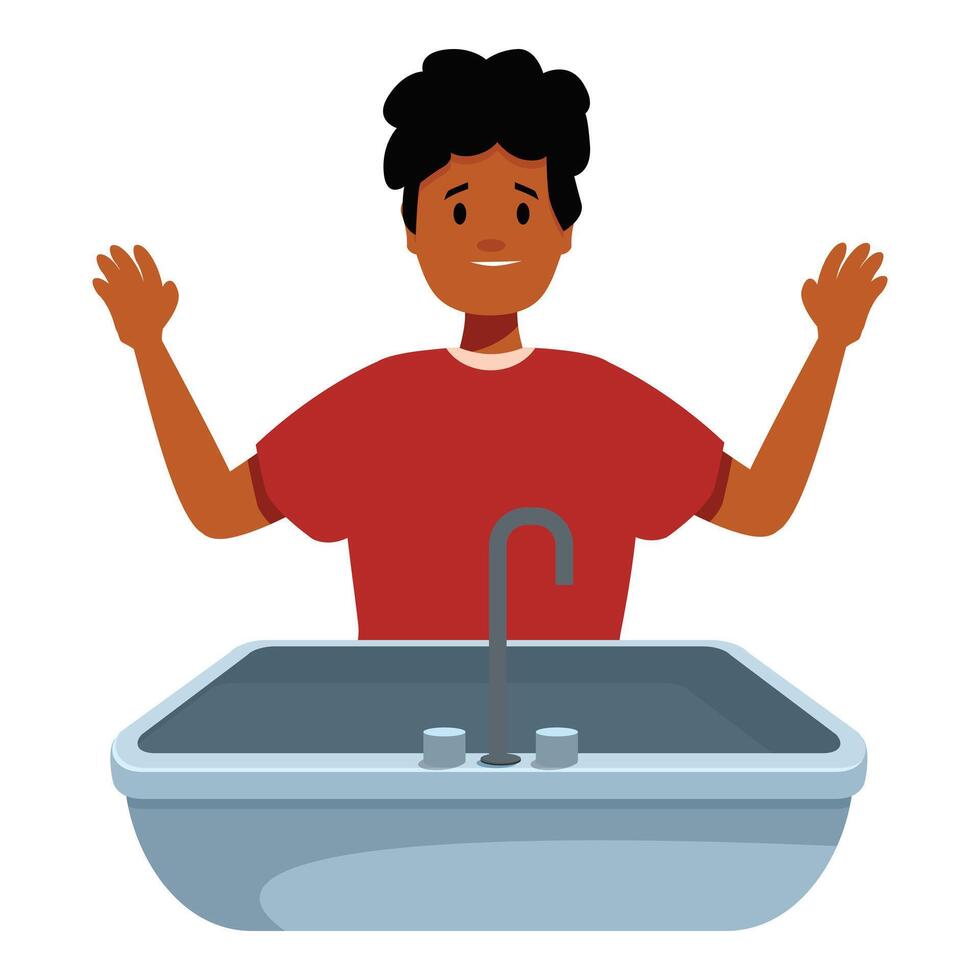Plumber showing clean empty sink with hands up after work is done Pro Vector