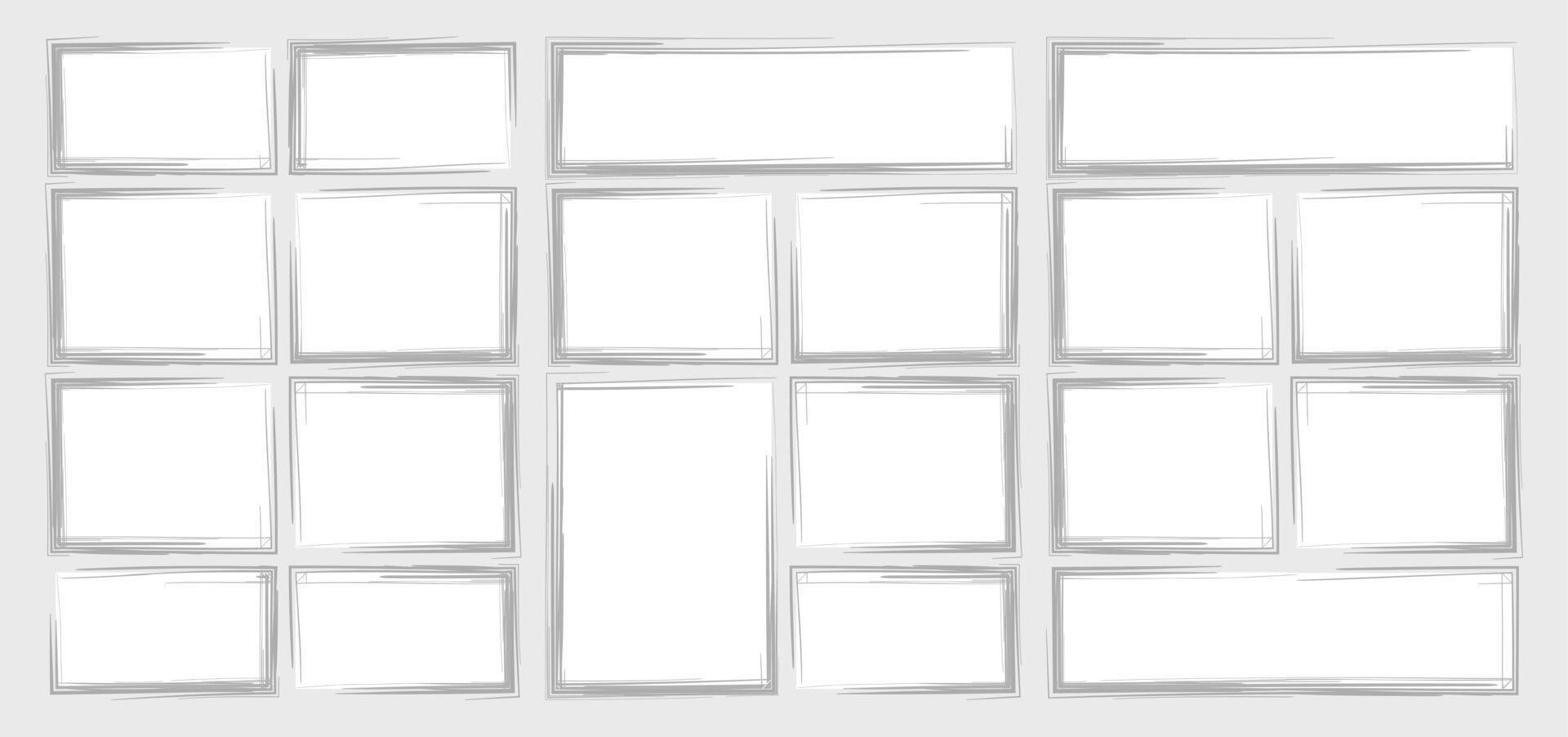 set storyboard layout template for rapidly create the comic book style. A4 design of paper ratio is fit for print out. isolated grunge banners frame handmade sketch in paint brush style Pro Vector
