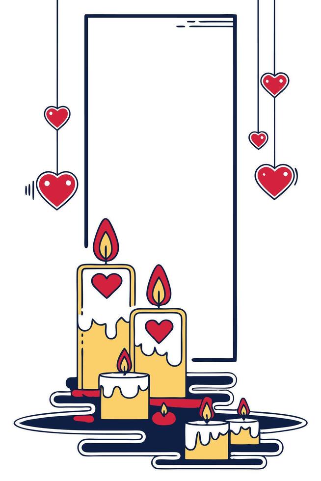 Heart-shaped candles float gently on calm water, casting a warm glow, with soft reflections and a serene background providing space for text. vector