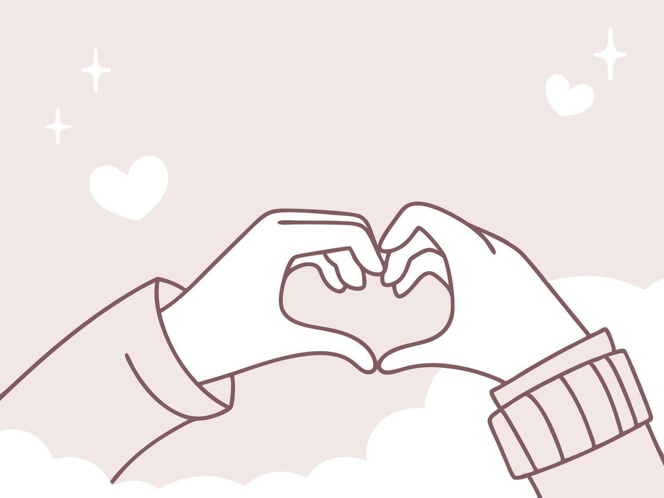 Two hands coming together to form a heart shape against a soft, pastel background. The wide format allows for an elegant text overlay. vector