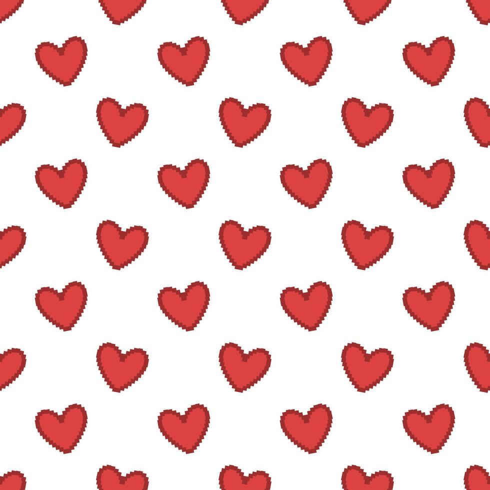 Seamless Pattern with Red Heart Pixel. Cute Game heart pixel style. illustration on a white background. Pro Vector