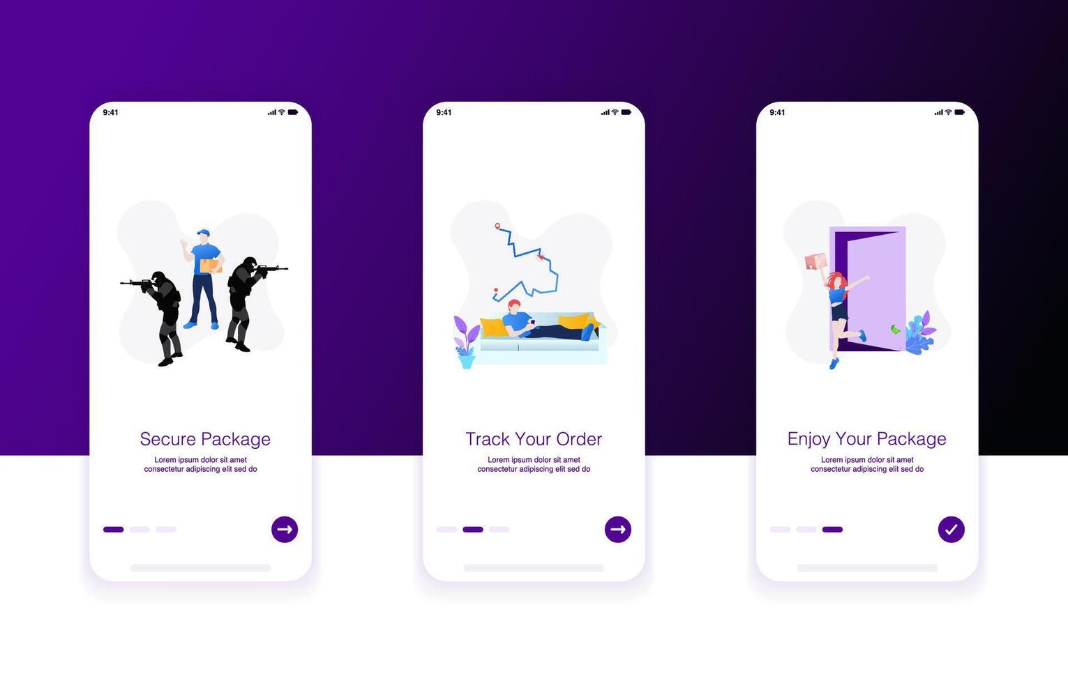 e-commerce or shipping onboarding screen. Secure package, tracking order, enjoy package Pro Vector