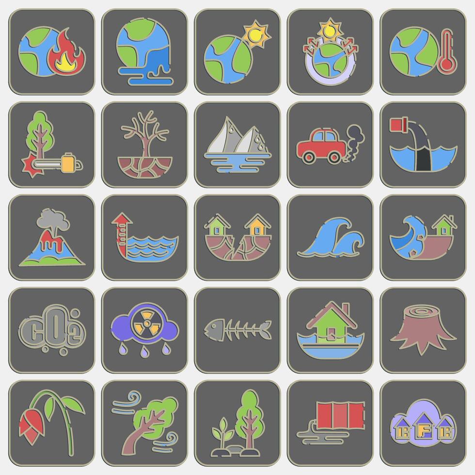 Icon set of global warming. Global warming elements. Icon in embossed style. Pro Vector