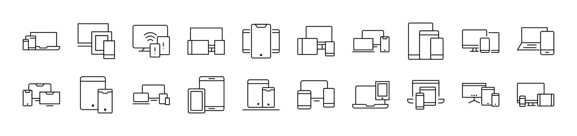 Computer, Laptop, Tablet Line Icon Bundle. Editable Stroke. Minimalistic Linear Pictogram for Design of Cards, Apps, Banners, Posts Pro Vector