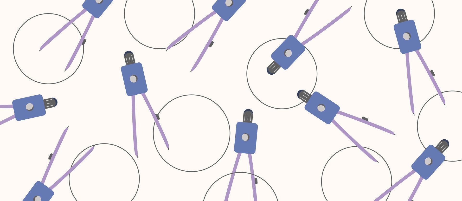 Compass drawing tool and circles background. Using a regular compass illustration. Pro Vector