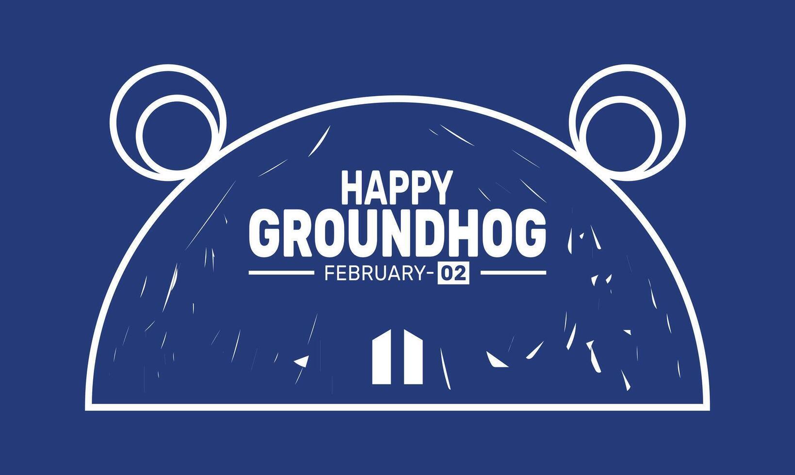 Groundhog Day is celebrated each year on February 2, when a groundhog emerges from its burrow to predict whether winter will last or an early spring will come. vector