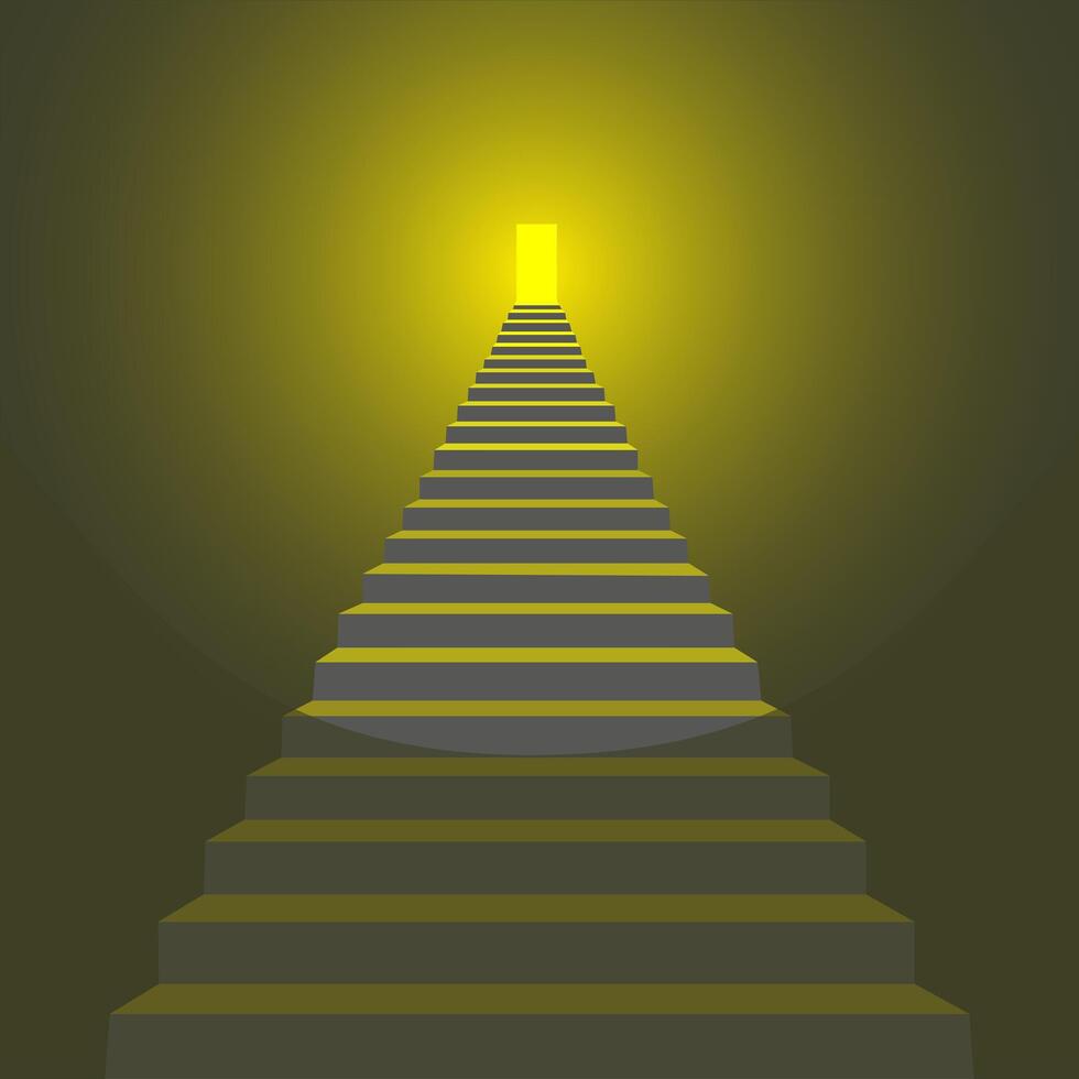 Walking towards the light. Light at the end of the tunnel. Steps leading to light in the dark. EPS 10. Pro Vector
