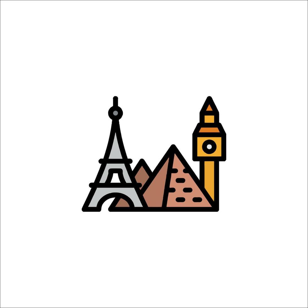 The eiffel tower, pyramids and the tower of london are all depicted in this vector