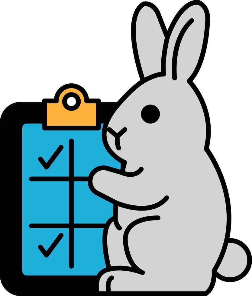 A rabbit is standing next to a clipboard with a check mark on it Free Vector