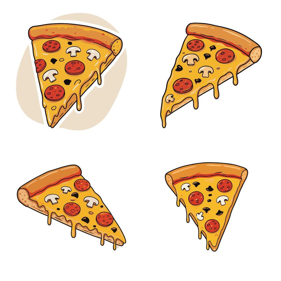Cartoon Style Pizza Slices in a Circular Pattern A Playful and Appetizing Design Pro Vector