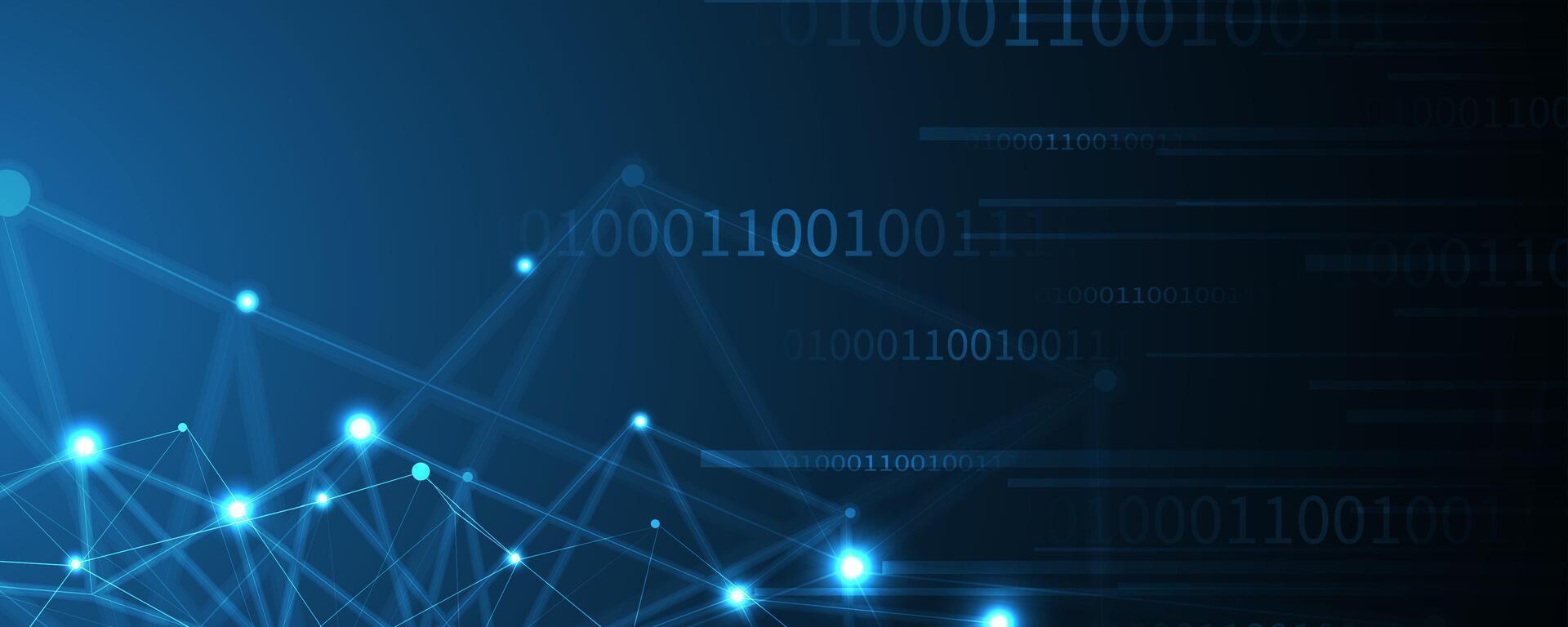 a blue background with binary code and dots Pro Vector