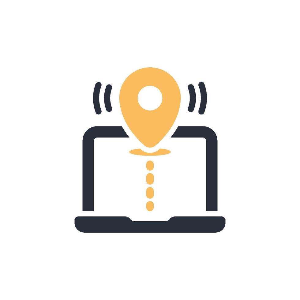 The icon is a sleek design symbolizing ondemand location services, featuring a laptop with a location pin, emphasizing digital navigation and connectivity in todays world Pro Vector