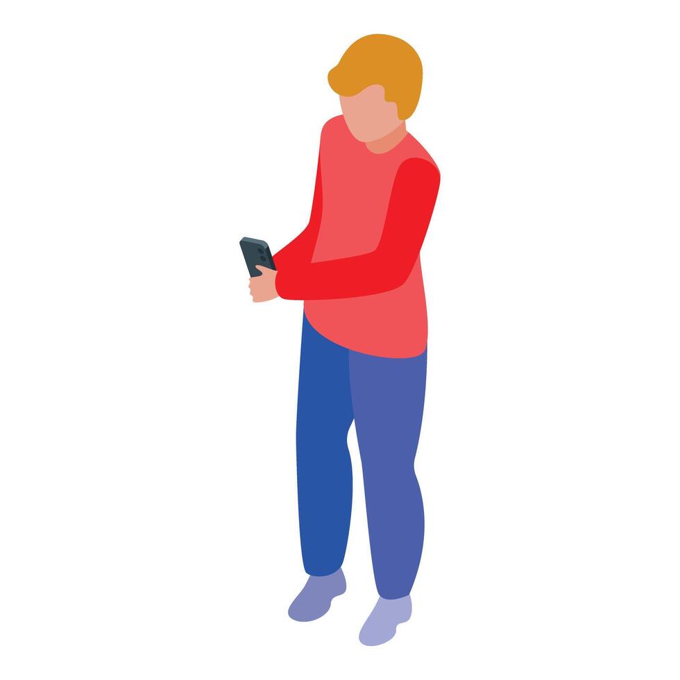 Blond boy using a smartphone, playing mobile games, or browsing the internet Pro Vector