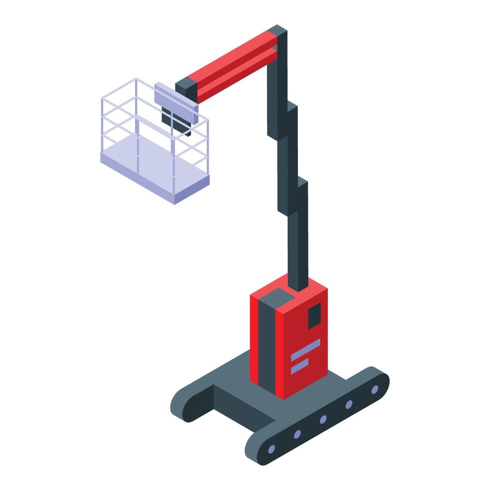 Lifting platform reaching high with empty basket in isometric view Pro Vector