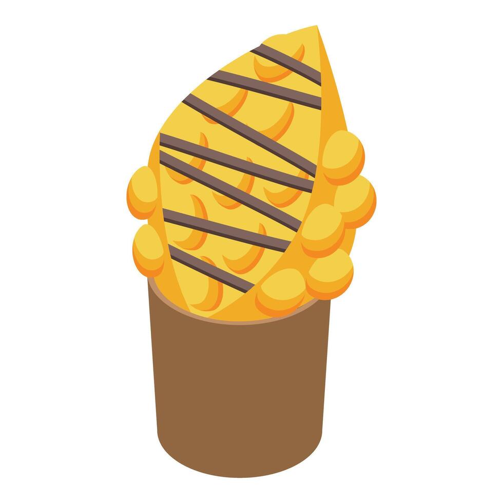 Hong kong egg waffle with chocolate drizzle in cardboard cup, isometric view Pro Vector