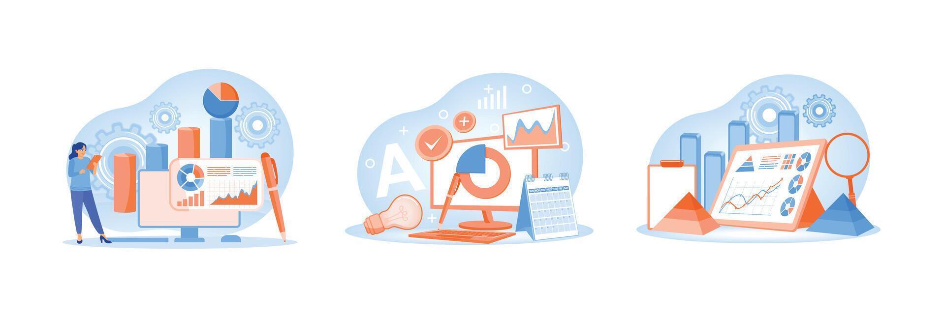Data Analysis and Visualization Illustrations Representing Modern Business Concepts Pro Vector