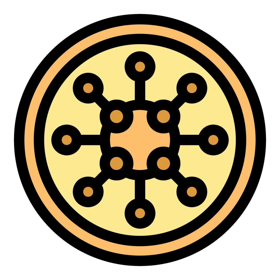 Round futuristic button showing interconnected nodes representing a network hub Pro Vector