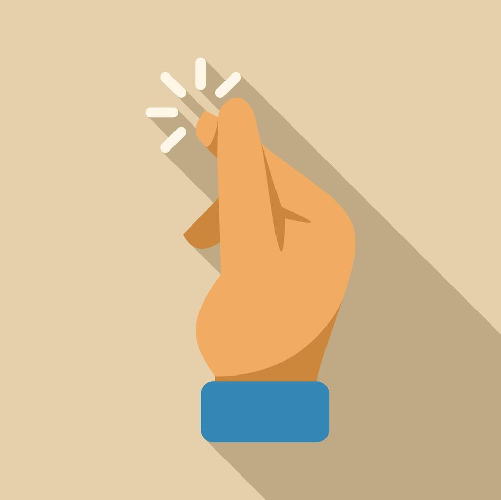 Hand snapping fingers creating sparkle effect with long shadow Pro Vector
