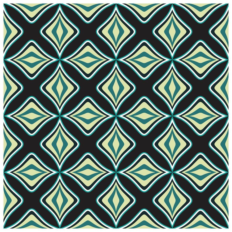 Square Geometric pattern with repeating teal and beige diamond shapes on a black background. Pro Vector