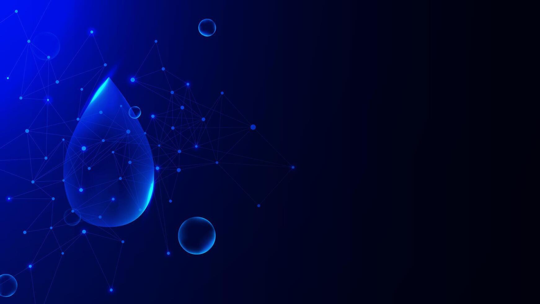 Futuristic falling water drop with bubbles and glowing particles. Modern wire frame mesh design Pro Vector