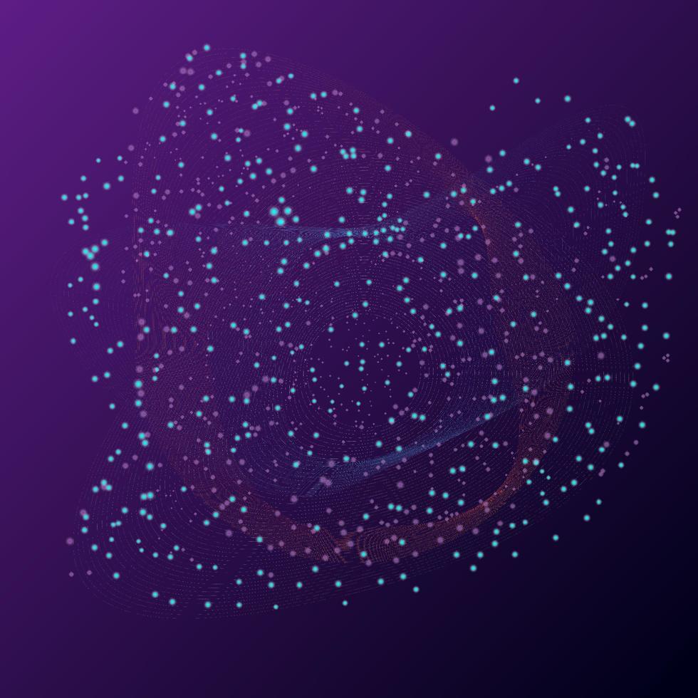 Abstract background of bright glowing particles and paths. vector illustration. Abstract dark background with highlights. Pro Vector