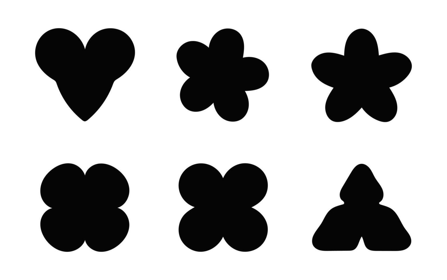 Irregular blob shape abstract elements graphic flat style design fluid illustration set. Pro Vector