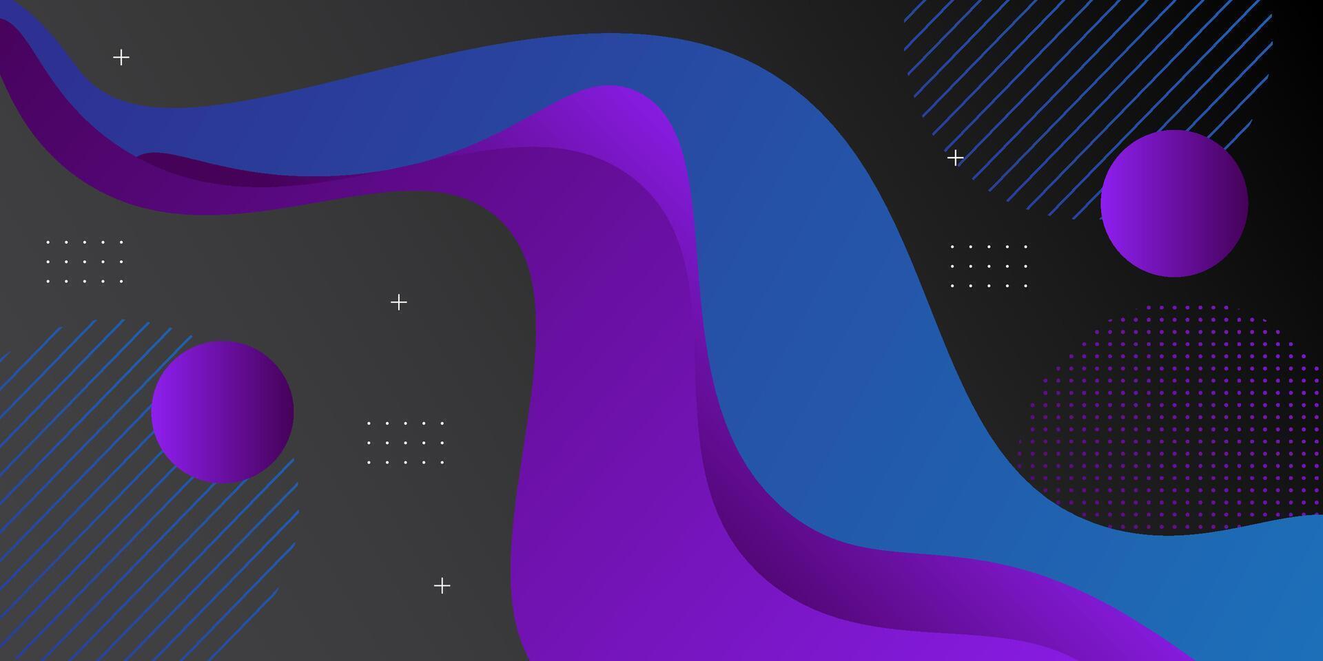 Purple and blue geometric business banner design. Creative banner design with wave and line shape as template. Simple design on dark horizontal banner. Eps10 Pro Vector