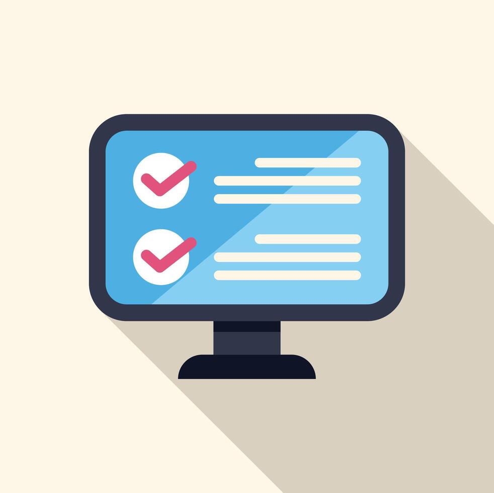 Computer monitor displaying checklist with check marks indicating completed tasks Pro Vector