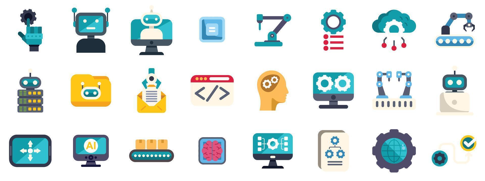 Artificial intelligence icons depicting automation, robotics, and machine learning Pro Vector